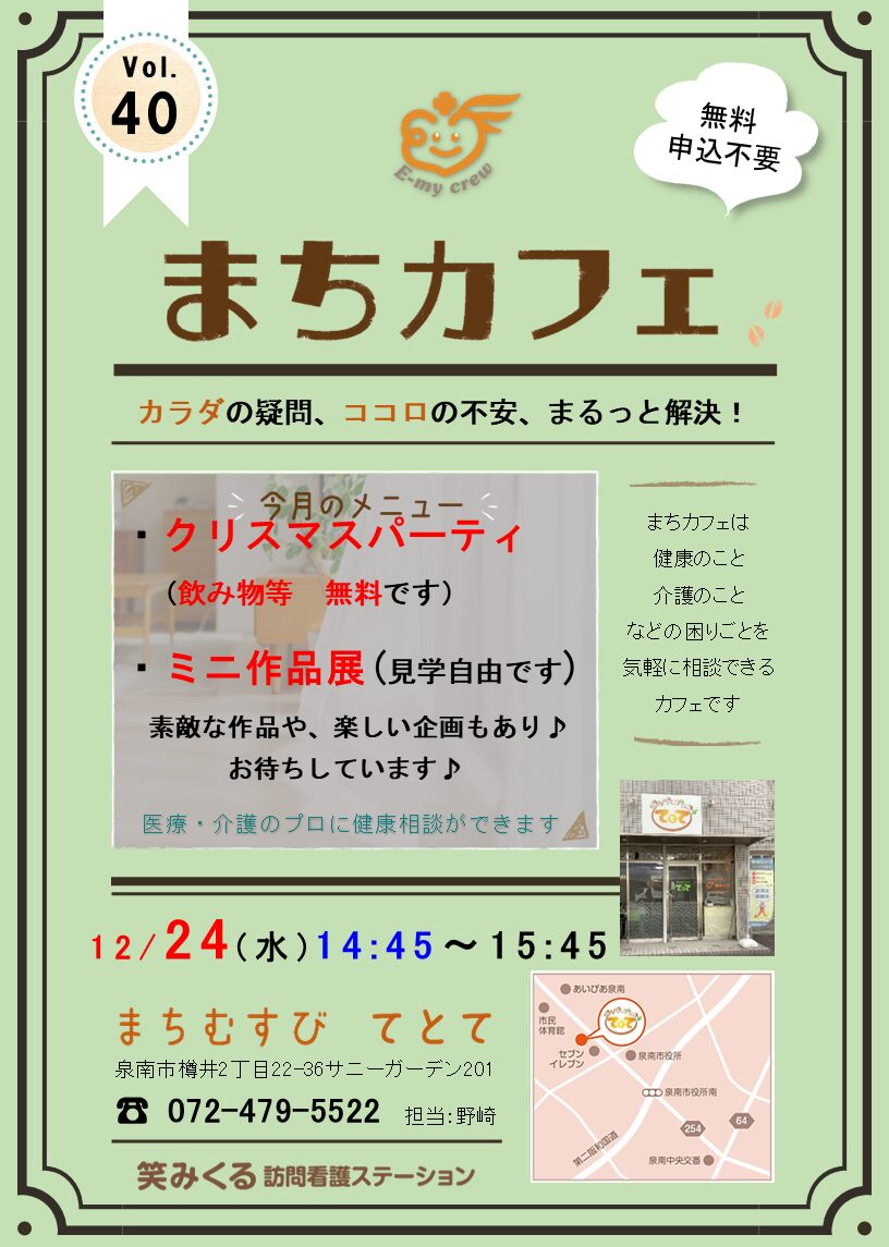 笑みくる訪問看護ステーションのお知らせ一覧 まちカフェ(2025年12月)のお知らせ 2025年12月8日2025年12月8日 まちカフェ(2025年11月)のお知らせ 2025年10月30日2025年10月30日 まちカフェ(2025年10月)のお知らせ 2025年10月3日2025年10月3日 まちカフェ(2025年9月)のお知らせ 2025年8月25日2025年8月25日 まちカフェ(2025年8月)のお知らせ 2025年8月4日2025年8月4日 まちカフェ(2025年7月)のお知らせ 2025年7月2日2025年7月2日 1 2 … 6 次へ →