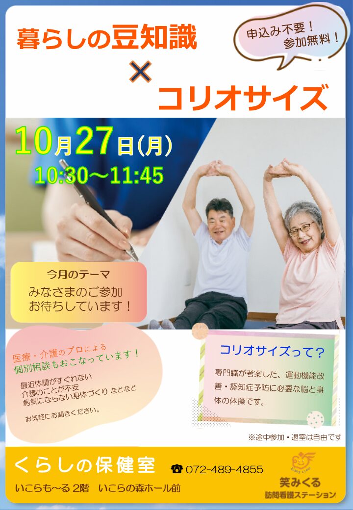 くらしの保健室のお知らせ一覧 暮らしの豆知識×コリオサイズ 2025年10月3日2025年10月3日 けんこうフェスタ 2025年10月3日2025年10月3日 いこらde健康ウオーキングのお知らせ 2025年10月3日2025年10月3日 いこらde健康ウォーキング 2025年8月25日2025年8月25日 暮らしの豆知識×コリオサイズ 2025年8月25日2025年8月25日 いこらde健康ウォーキング 2025年8月4日2025年8月4日 1 2 … 7 次へ →